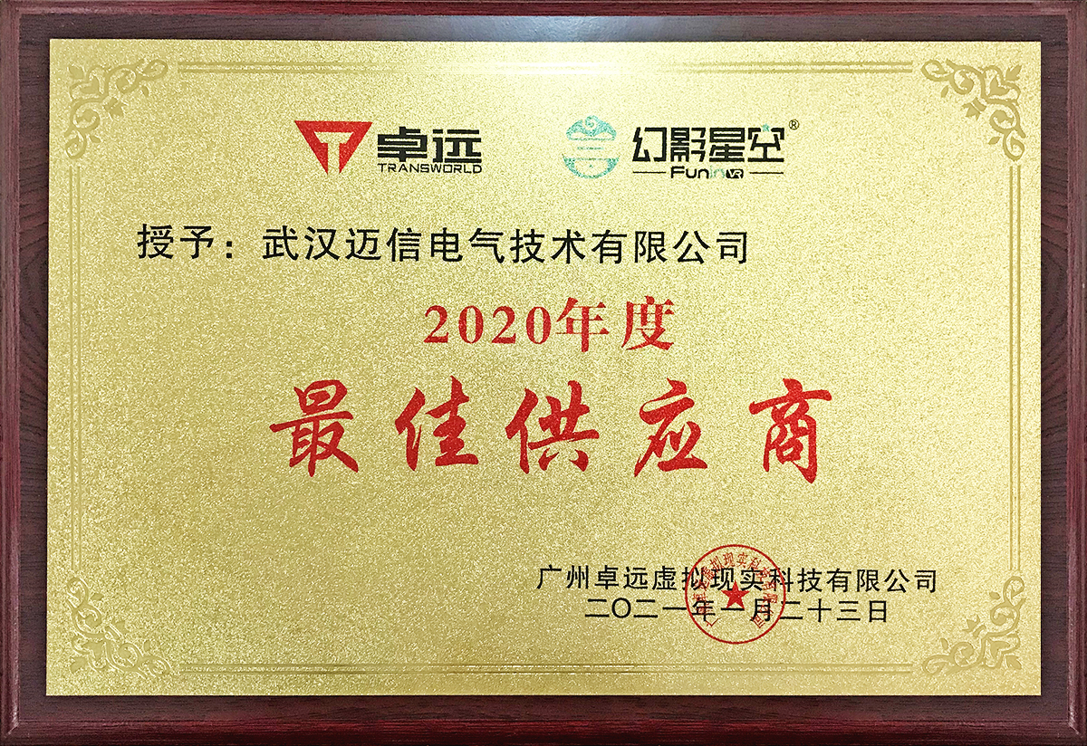 • 最佳供應商 頒發時間:2021年1月 頒發單位:廣州卓遠虛擬現實科技有限公司