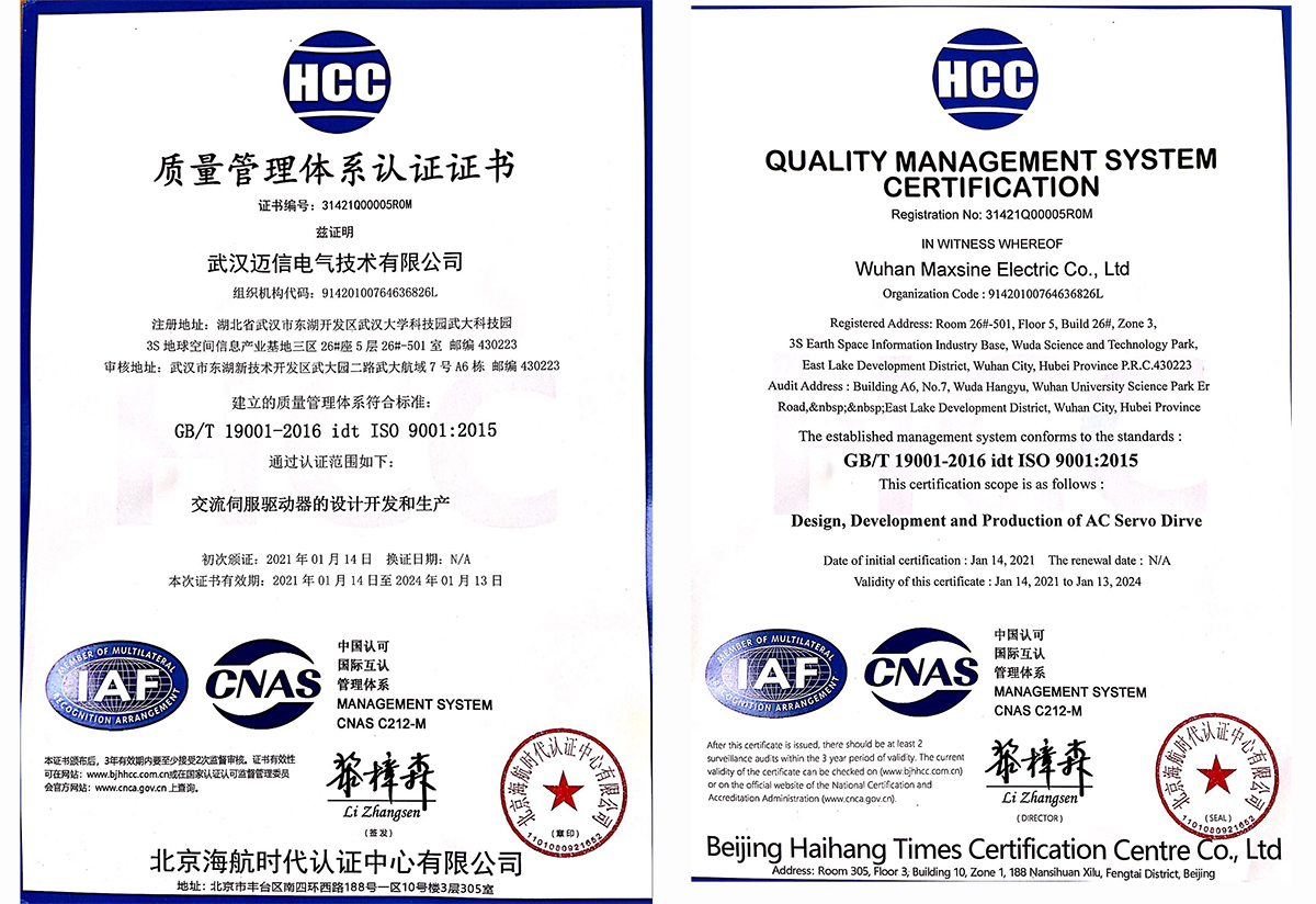 • 質量管理體系認證證書 頒發時間:2021年1月 頒發單位:北京海航時代認證中心有限公司