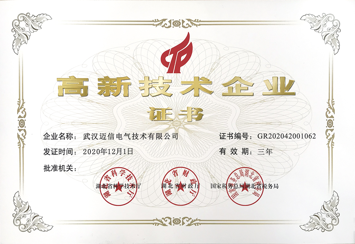 • 高新技術企業 頒發時間:2020年12月 頒發單位:湖北省科學技術廳