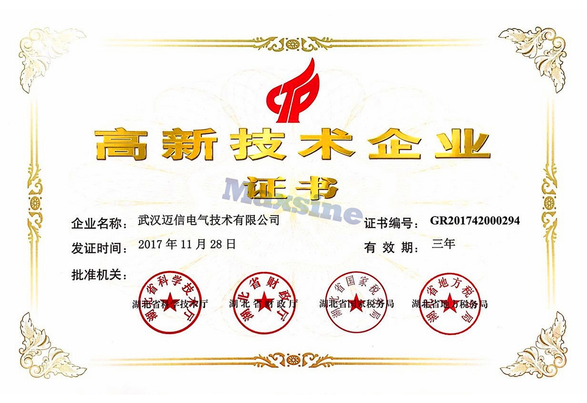 • 高新技術企業 頒發時間:2017年11月 頒發單位:湖北省科學技術廳