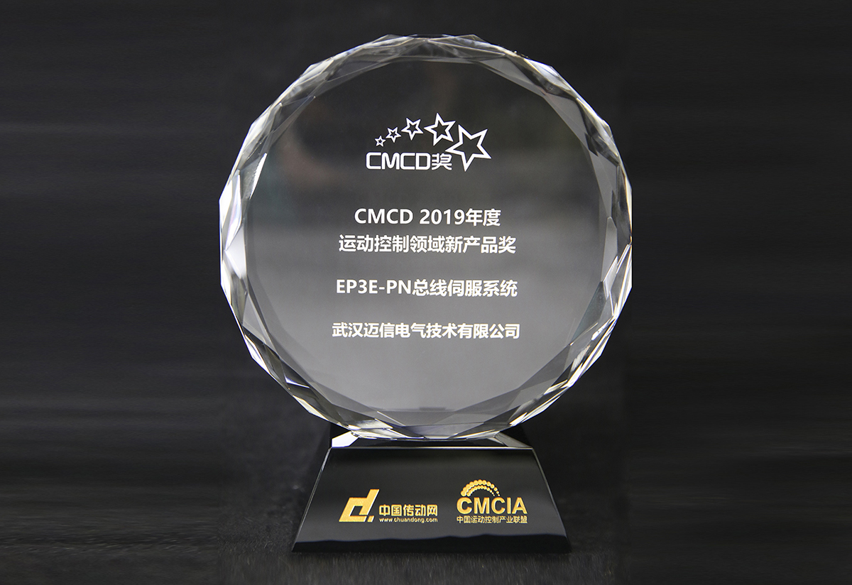 • CMCD 2019年度運動控制領域新產品獎 頒發時間:2019年12月 頒發單位:中國傳動網&中國運動控制產業聯盟