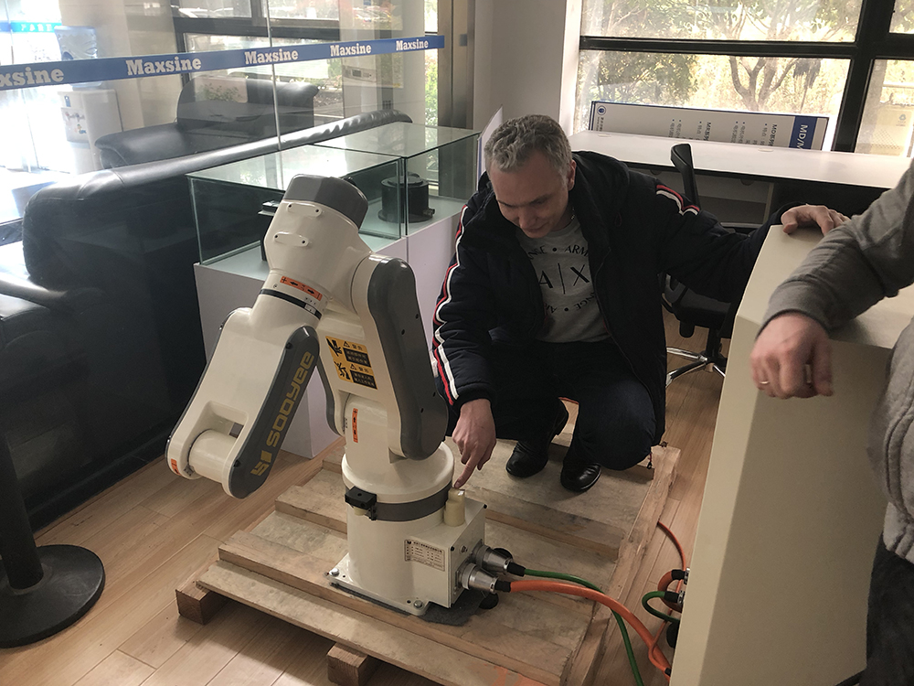 身為機器人應用廠家,展廳中的工業機器人引起了俄羅斯朋友的興趣,大家圍繞邁信自主研發的六軸多合一伺服驅動器EPR6及工業機器人相談甚歡。