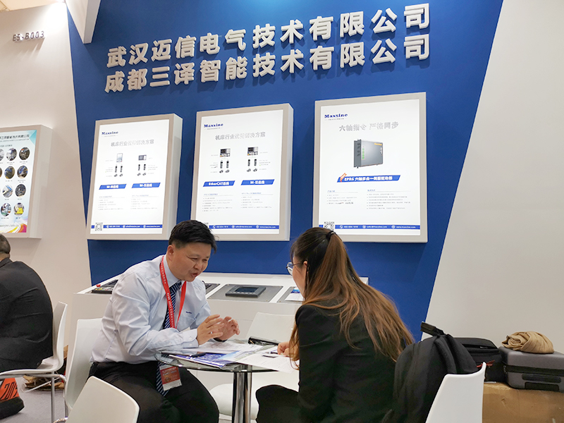 邁信電氣所在的E5館主要展品為數(shù)控系統(tǒng),作為數(shù)控系統(tǒng)的主要構(gòu)成部分,伺服驅(qū)動器與伺服電機(jī)是E5館觀眾的主要關(guān)注對象。
