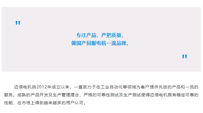 邁信電機:專注產品、嚴把質量,做國產伺服電機一流品牌