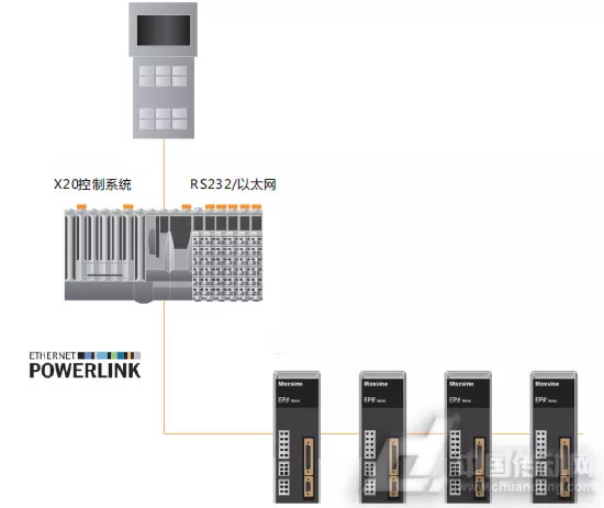 通過對客戶需求的深入分析,我們?yōu)榭蛻粼O(shè)計了“B&R的X20控制器+EP3E伺服驅(qū)動器”的電控解決方案,如圖2所示。