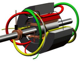 電機主要包括一個用以產生磁場的電磁鐵繞組或分布的定子繞組和一個旋轉電樞或轉子和其它附件組成。在定子繞組旋轉磁場的作用下,其在電樞鼠籠式鋁框中有電流通過并受磁場的作用而使其轉動。