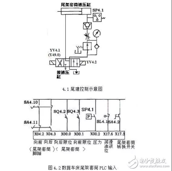 故障現(xiàn)象:該數(shù)控車床配備FANUC-OT系統(tǒng),當腳踏尾座開關使套筒頂尖頂緊工件時,系統(tǒng)產(chǎn)生報警。尾架套筒的示意圖和PLC輸入開關分別如圖4.1和4.2所示。